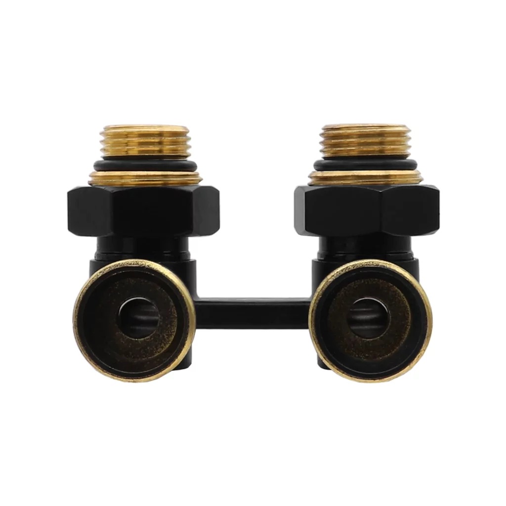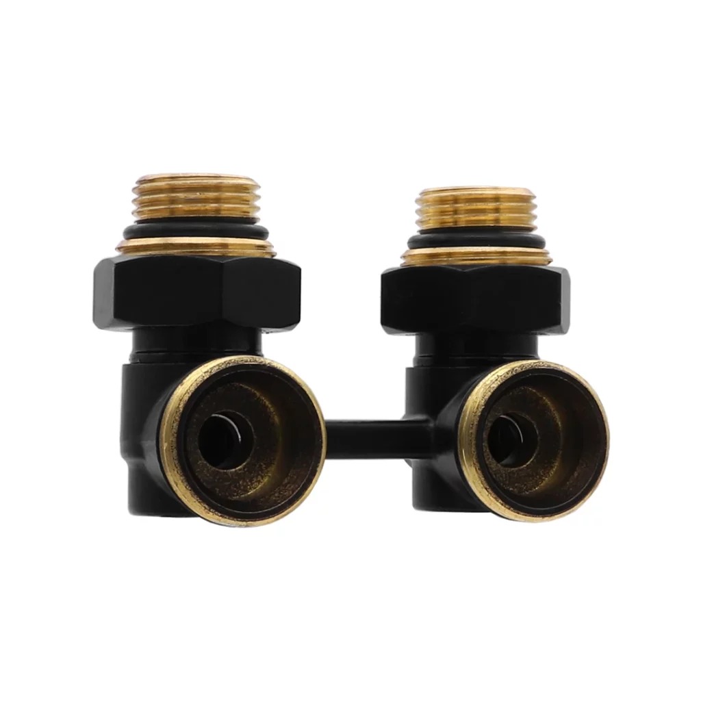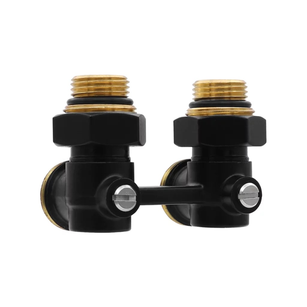 Фитинг двойной угловой со встроенным шаровым краном Vieir Мультифлекс (черный, с комплектом адаптеров 1/2"*3/4") (VR309-C)