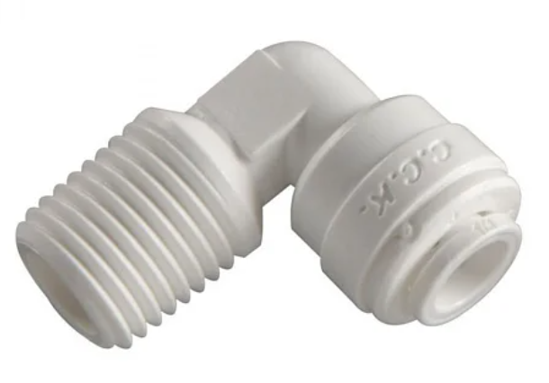 Фитинг угловой 3/8-1/4 трубка-резьба используется для подключения обратноосмотических систем очистки воды. Произведен из пластика пищевого класса. Сертифицирован NSF. Данный фитинг широко применяется в фильтрах для воды, так же может быть использован в любых гидравлических или пневматических системах с рабочим давлением до 8 атмосфер.