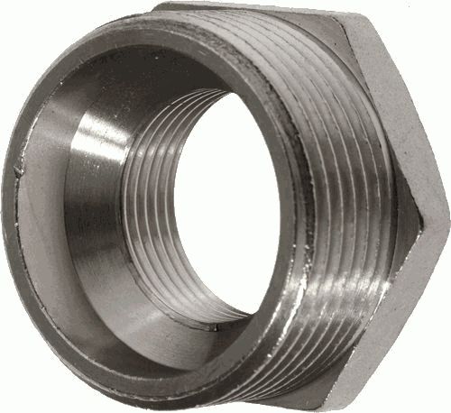Футорка предназначена для создания соединения трубопровода при переходе с диаметра трубы. Резьба меньшего диаметра - внутренняя, большего - наружная. Изготовлена из горячепрессованной латуни с никелированным покрытием, номинальное номинальное рабочее давление от 25 бар, рабочий диапазон температуры от -20°C до +150°C.