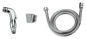 Комплект: лейка с кнопкой, шланг 1200 мм, фиксированный держатель для душевой лейки.