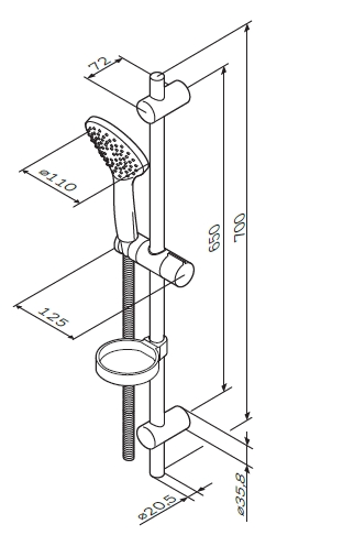 Гарнитур душевой AM.PM Gem ручн.душ 3 ф-ции d 110 мм, штанга 700, шланг 1 750 мм, хром (F0190100)