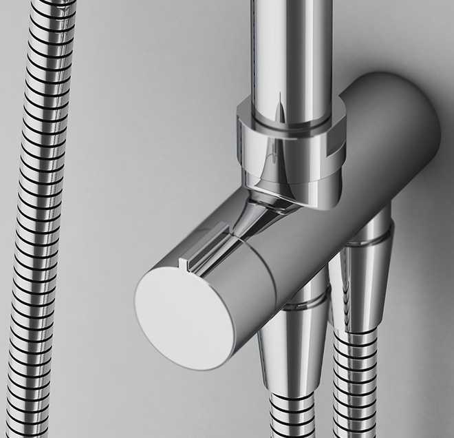- Тотальный дизайн в действии: все детали душевой системы – от пропорций ручного и верхнего душей до рисунка расположения форсунок на лейках – подчинены единой дизайн-концепции коллекции Gem.