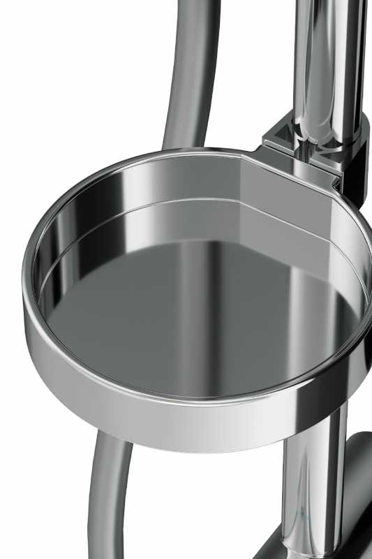 - Переключающий вентиль с керамическим картриджем, 3 режима ручного душа (Spray, EnerJet, Spray + Massage, переключатель режимов Turning Switch), функция Rub & Clean для легкой очистки душевых форсунок, регулируемый в трех плоскостях.