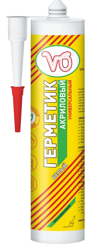 Универсальный акриловый герметик на водной основе для заполнения трещин и малоподвижных швов. Обладает отличной адгезией к большинству строительных материалов: бетону, кирпичу, дереву, кафельной плитке, окрашенным и лакированным поверхностям.