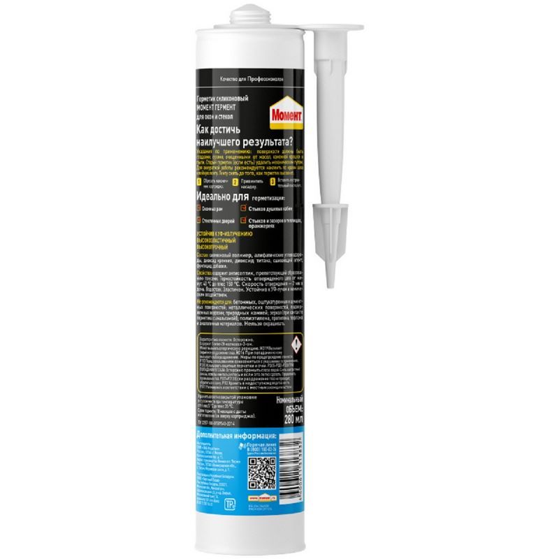 Силиконовый герметик Момент Гермент для окон и стекол обладает высокой устойчивостью к воздействию меняющихся атмосферных условий и химических веществ.