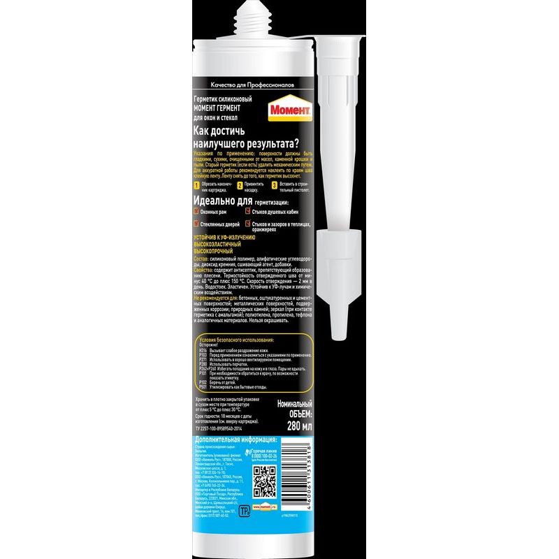 Герметик силиконовый для окон и стекол Момент Гермент 280 мл. (прозрачный) (1997809)