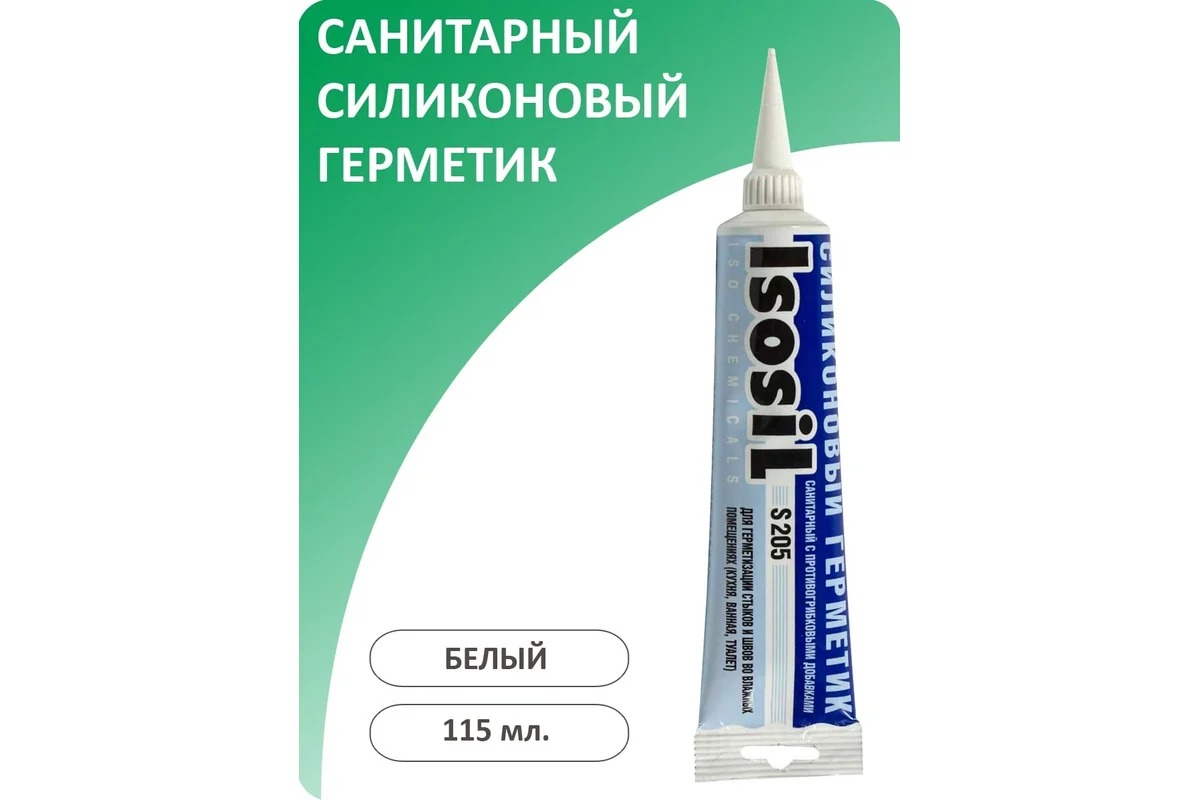 Силиконовый санитарный герметик ISOSIL S205 белый, 115 мл 2050108 используется при выполнении монтажных работ в помещениях с высокой влажностью, кухнях, ванных комнатах, подвалах, морозильных камерах. Состав не требует применения плунжерного пистолета для герметика.