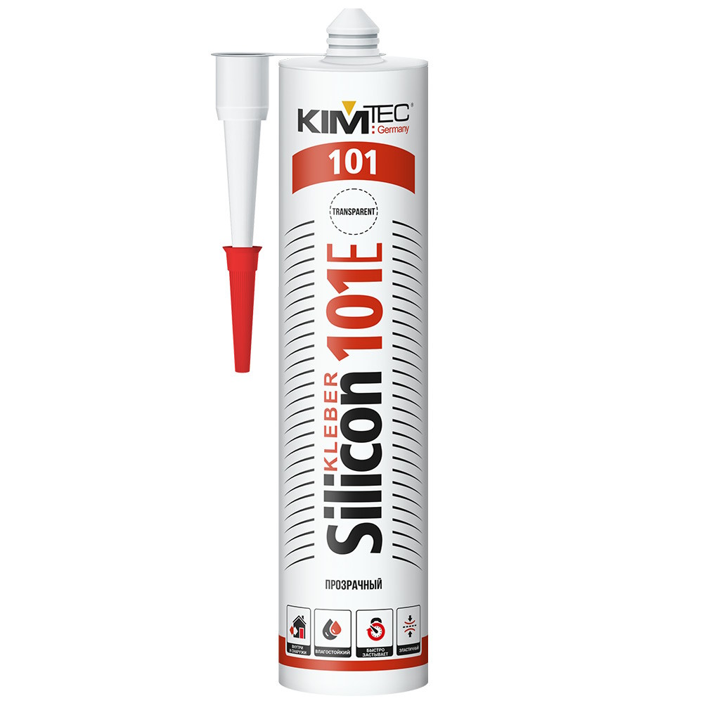 KIM-TEC Silicon 101E представляет собой однокомпонентный cиликоновый каучук, используемый в качестве герметика и клея. Под воздействием влаги воздуха продукт быстро превращается в резинообразный, устойчивый уплотнитель. KIM-TEC Silicon 101E является продуктом многостороннего применения и основная область его использования - это высококачественные работы по уплотнению и склеиванию во многих ремеслах.