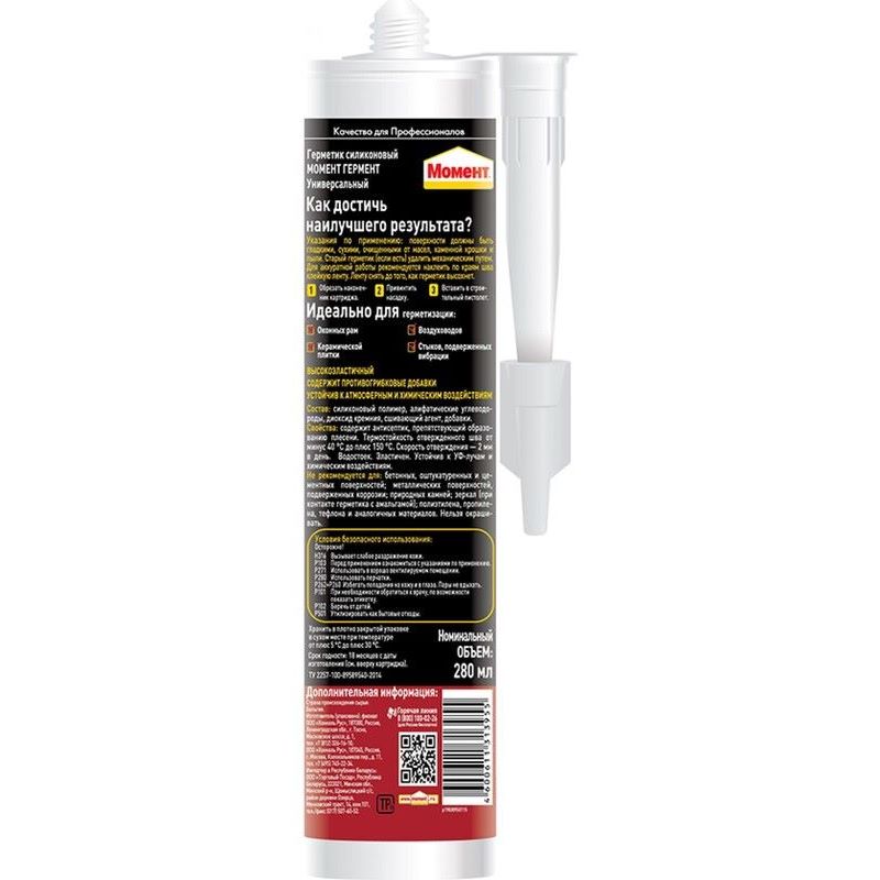 Силиконовый универсальный герметик МОМЕНТ ГЕРМЕНТ прозрачный 280 мл Б0023036 1998757 применяется при общестроительных и ремонтных работах. Возможно использование как снаружи, так и внутри помещения.