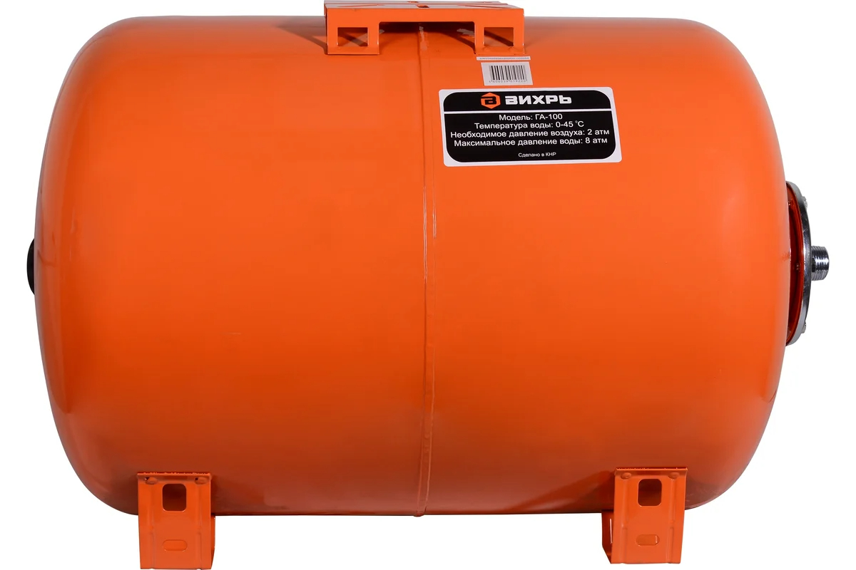 Гидроаккумулятор Вихрь ГА-100 предназначен для накопления воды под давлением и сглаживания гидроударов, что значительно продлевает срок службы насоса и других компонентов системы.