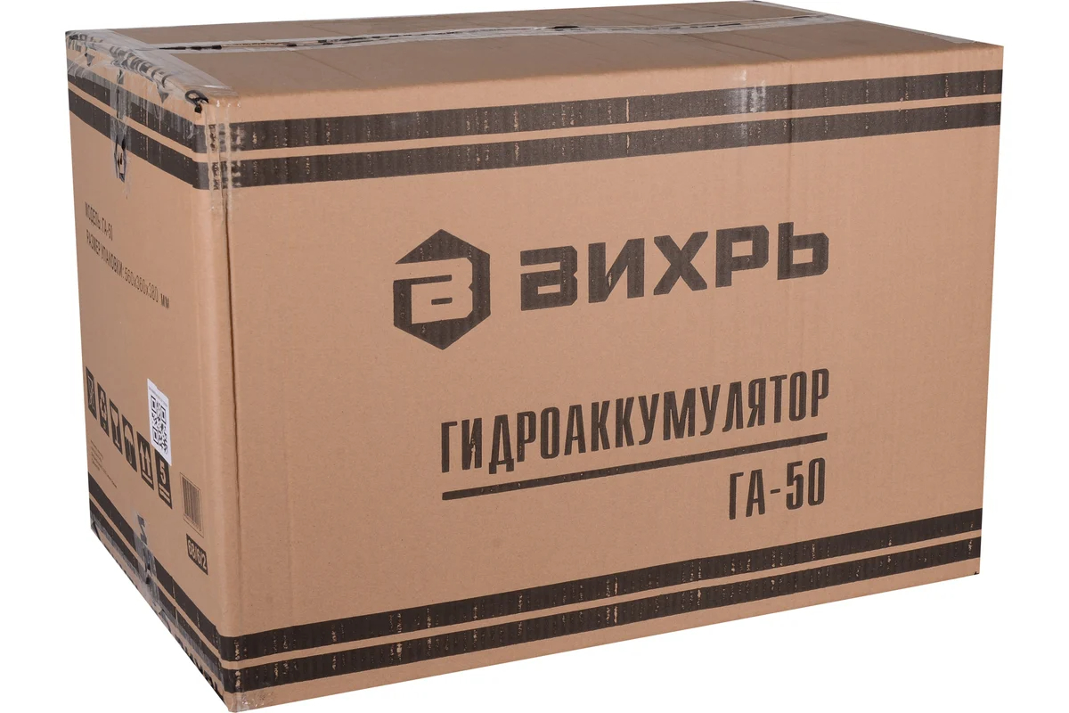 Гидробак Вихрь ГА-50 устанавливается горизонтально на удобных ножках. Имеется площадка для установки внешнего насоса. Мощность подключаемого насоса не более 1500 Вт для поверхностного насоса и 1000 Вт для скважинного.