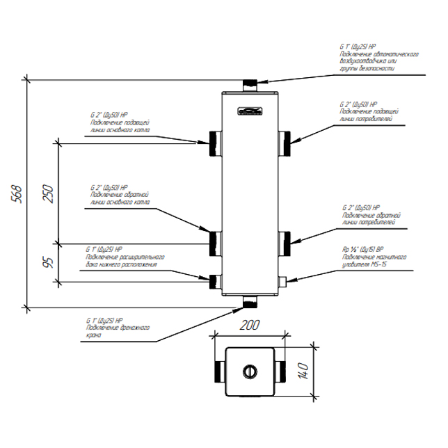 Гидрострелка Gidruss GR-250-50 (до 250 кВт, G 2", сталь 09Г2С)