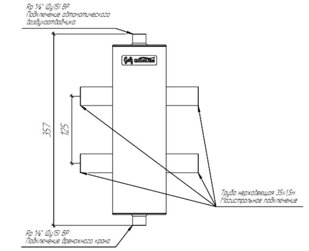 Гидрострелка под пресс фитинг GRSS-100-35PF из нержавеющей стали на 3/4 дюйма предназначена для обвязки многоконтурных систем отопления непосредственно через обжимные фитинги 35 мм трубных пресс-систем Valtec, Kan, Sanha, Viega из нержавеющей или оцинкованной стали.