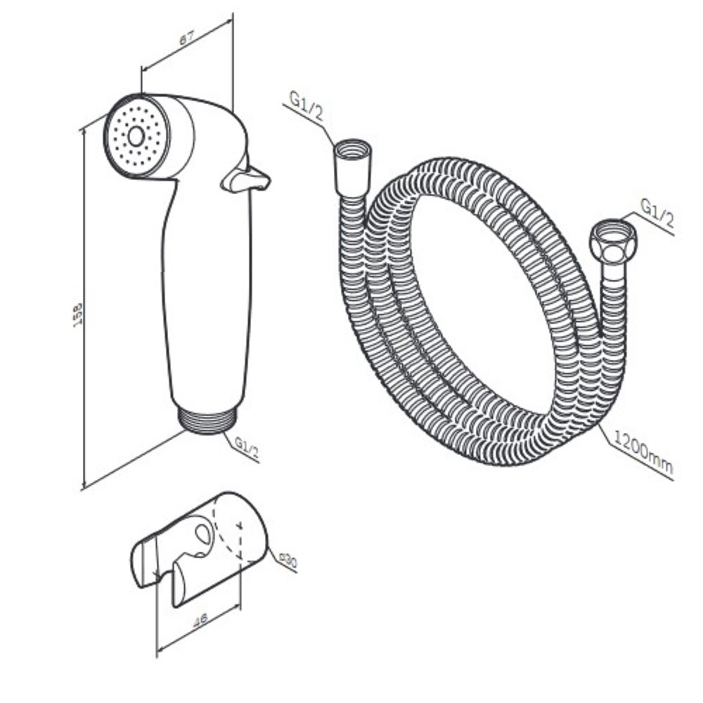 Гигиеническая лейка в комплекте с шланговым подсоединением-держателем и шлангом.