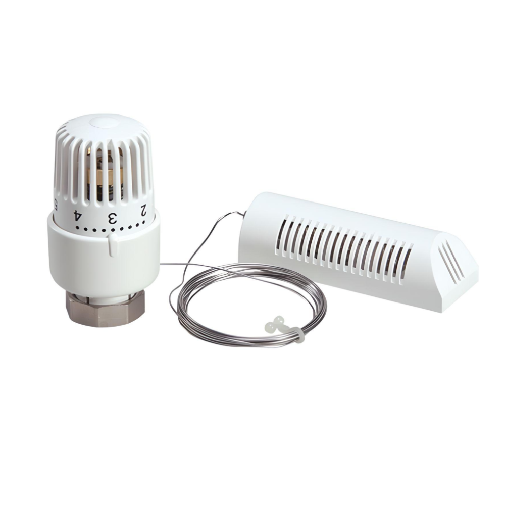 Термостатическая головка VIEIR соединенная медной капиллярной трубкой с настенным термочувствительным датчиком температуры. Основное назначение - это поддержание заданной температуры воздуха в помещении путём ограничения поступления теплоносителя через термостатический клапан.