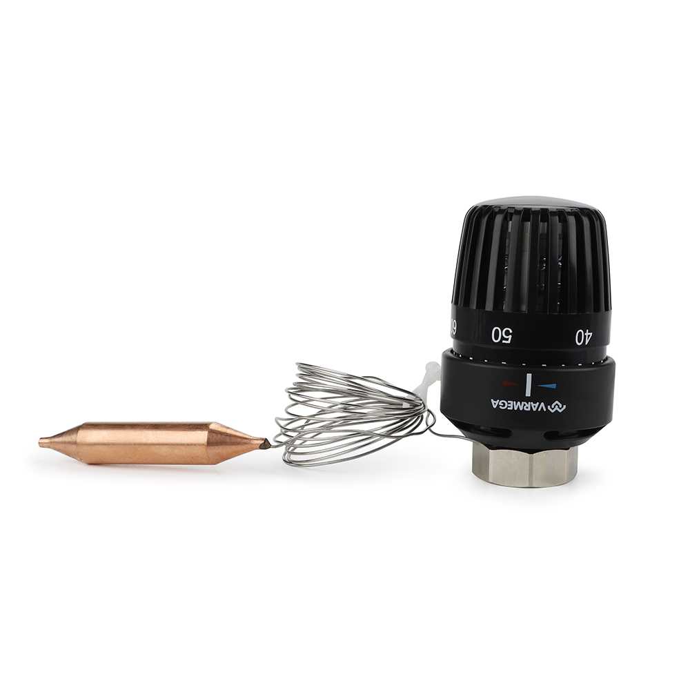 Головка термостатическая Varmega VM117 с выносным датчиком 20-70°С (d14х84) М30х1,5 (черная) (VM11712)