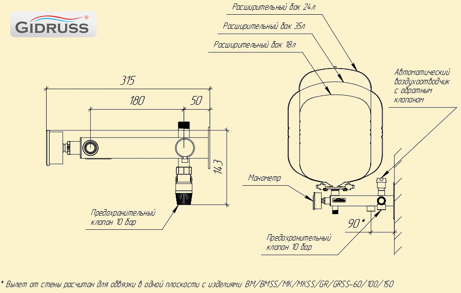 Группа безопасности бойлера Gidruss BKSS-35-3 (3 бар, верхнее крепление расшир. бака до 35 л)