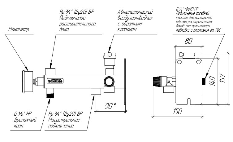BKSS-35-3 необходима для обвязки котла с рабочим давлением до 2.5 бар и организации узла обвязки расширительных баков с удобной подпиткой.