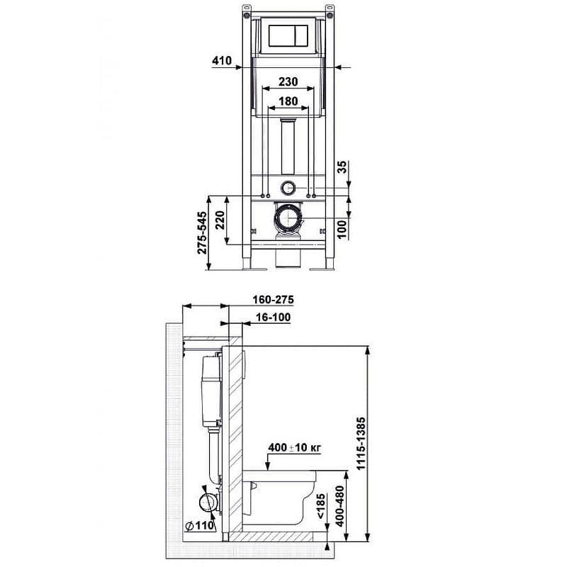 Комплект унитаза с инсталляцией Berges Wasserhaus Atom 042435 с сиденьем Микролифт и Белой клавишей смыва.