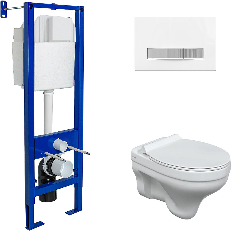 Комплект унитаза с инсталляцией Berges Wasserhaus Atom 042444 с сиденьем Микролифт и Белой Хром клавишей смыва.