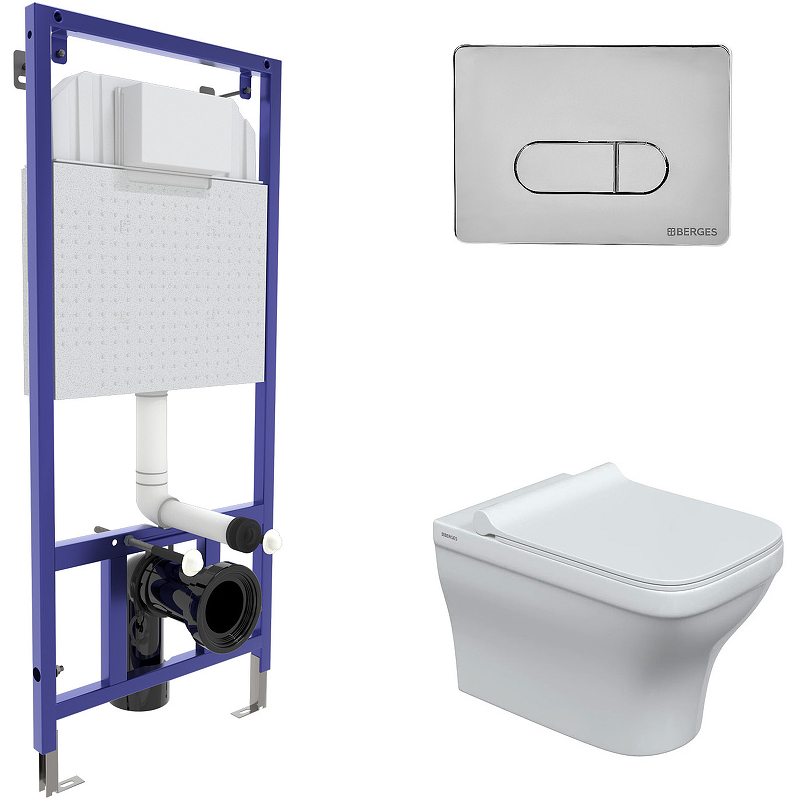 Комплект унитаза с инсталляцией Berges Wasserhaus Novum 042450 с сиденьем Микролифт и клавишей смыва Хром глянцевый.