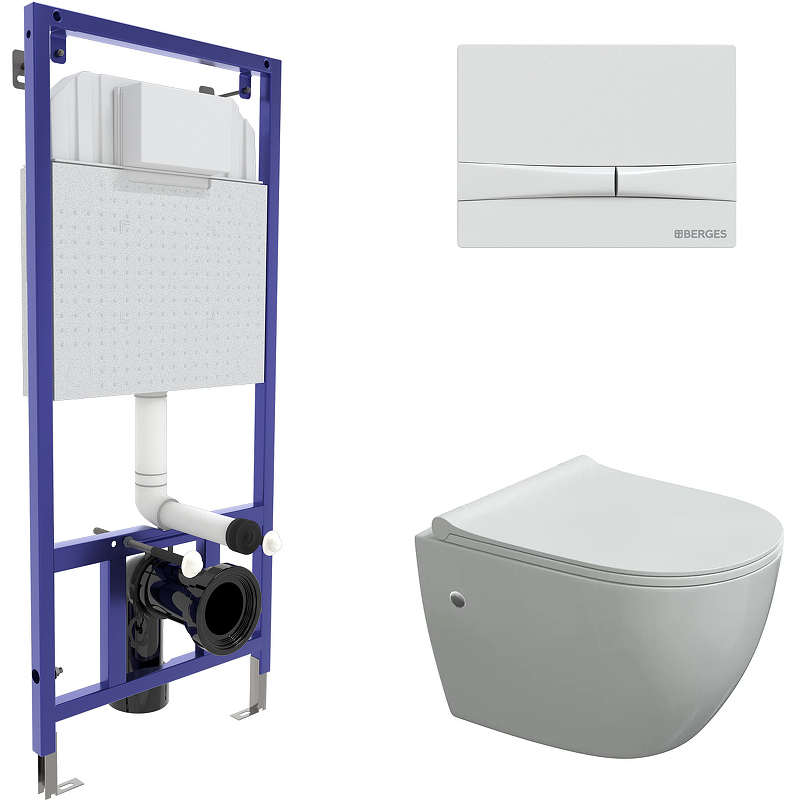 Комплект инсталляция с унитазом Berges Novum c с кнопкой F1 белая, унитаз OKUS, сиденье Toma Slim SO (043282)