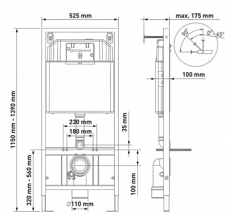 Комплект унитаза Berges Wasserhaus Okus 043282 с инсталляцией Novum 525 с сиденьем Toma Slim SO Микролифт и Белой клавишей смыва F1.