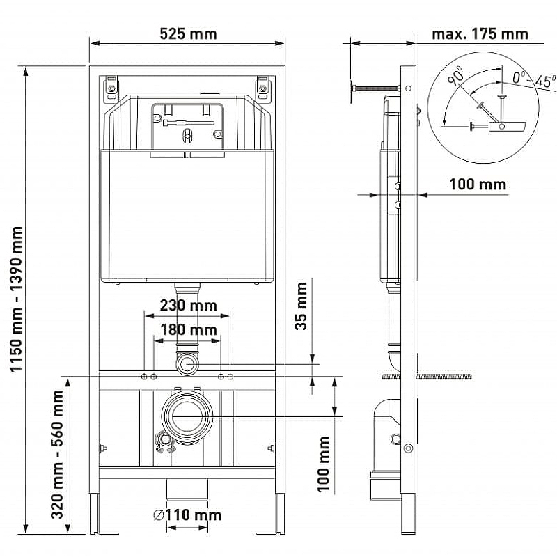 Комплект унитаза с инсталляцией Berges Wasserhaus Novum 042439 с сиденьем Микролифт и Черной клавишей смыва.