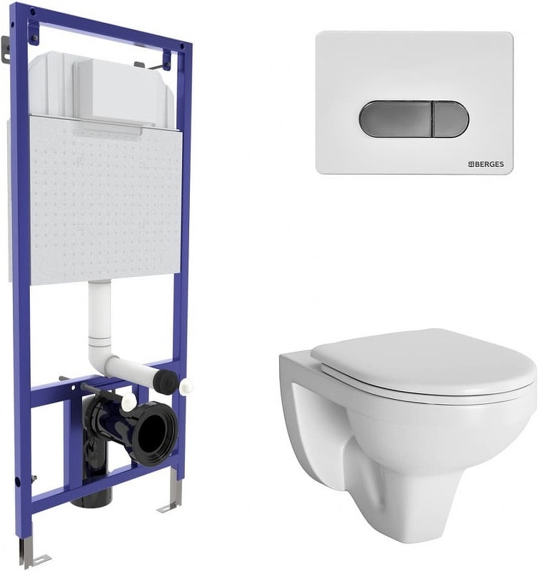 Комплект унитаза Berges Wasserhaus Novum 042419 с инсталляцией Novum 525 с сиденьем Gamma Микролифт и клавишей смыва D7 Белой, хром глянец.
