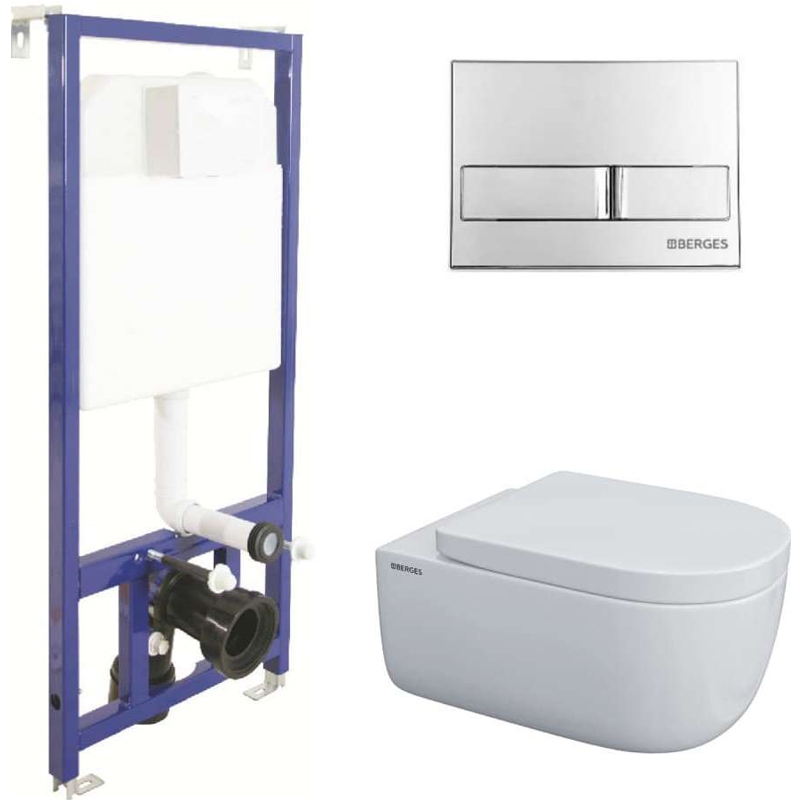 Комплект инсталляция с унитазом Berges Novum525 c с кнопкой L3 хром глянец, унитаз EGO XL 54 см, сиденье Toma SO (043233)