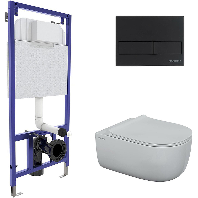 Подвесной унитаз Berges Wasserhaus Ego XL Rimless с крышкой-сиденьем Toma Slim SO микролифт, в комплекте с инсталляцией NOVUM 525 и кнопкой смыва D3 хром глянец 043201.