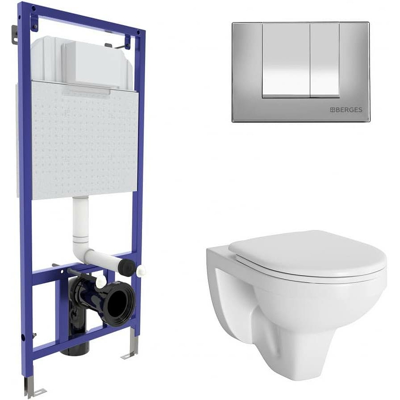 Комплект унитаза Berges Wasserhaus Novum 042427 с инсталляцией Novum 525 с сиденьем Gamma Микролифт и клавишей смыва S3 Хром глянецевый.