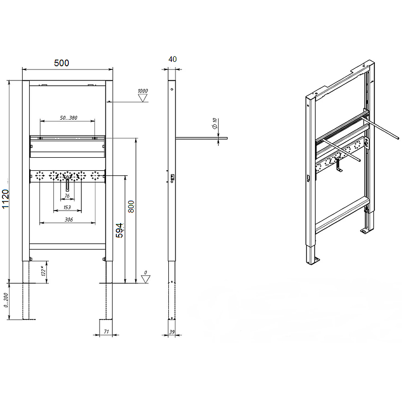 Инсталляция для подвесной раковины 1120*500*40 мм
