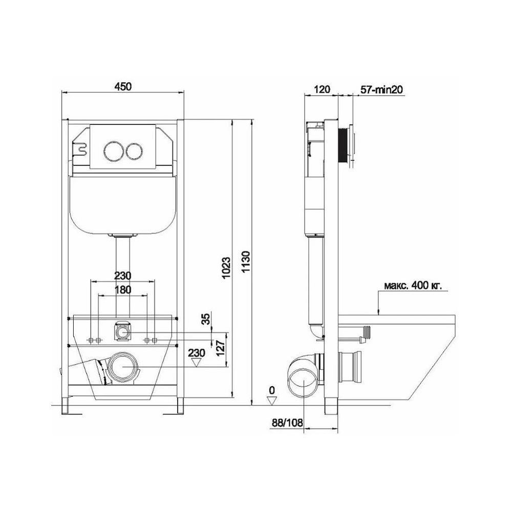 Инсталляция для унитаза Aquanika Basic (с клавишей смыва, два режима слива) (10.702.450.02.19)