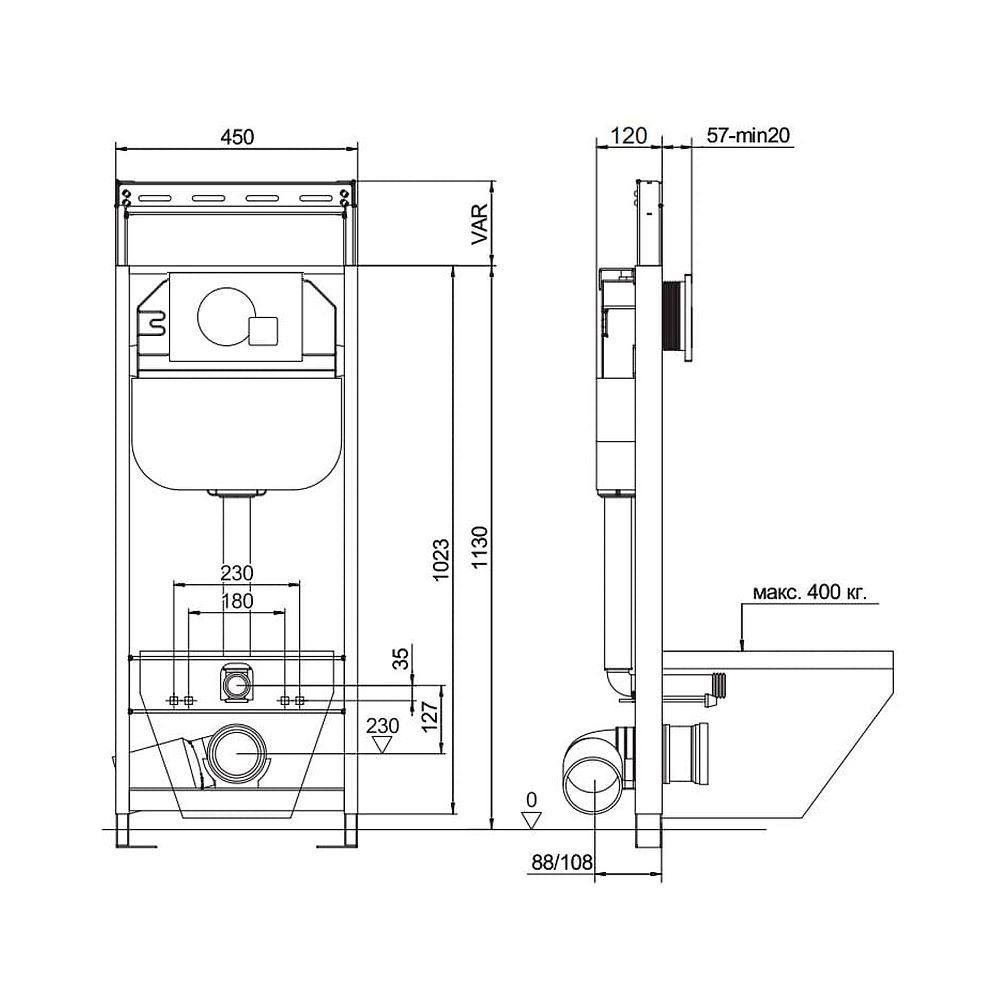 Инсталляция для унитаза Aquanika Basic (с клавишей смыва, два режима слива) (10.702.45B.02.10)