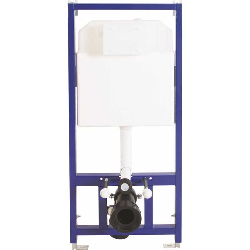 Возможность монтажа в угол. Металлический каркас, окрашенный антикоррозийной эмалью. Расчетная нагрузка 400кг. Толщина бачка 80мм. Объём резервуара воды 10 л с шумоизоляцией бачка. При давлении 3 бар уровень шума не выше 13 дБ. Подвод воды сверху (G1/2 наружная). Объем смыва 3/6 литра с возможностью регулировки. Межосевое расстояние под шпильки для подвеса унитаза 18 и 23 см. Ножки регулировки высоты из оцинкованной стали.
