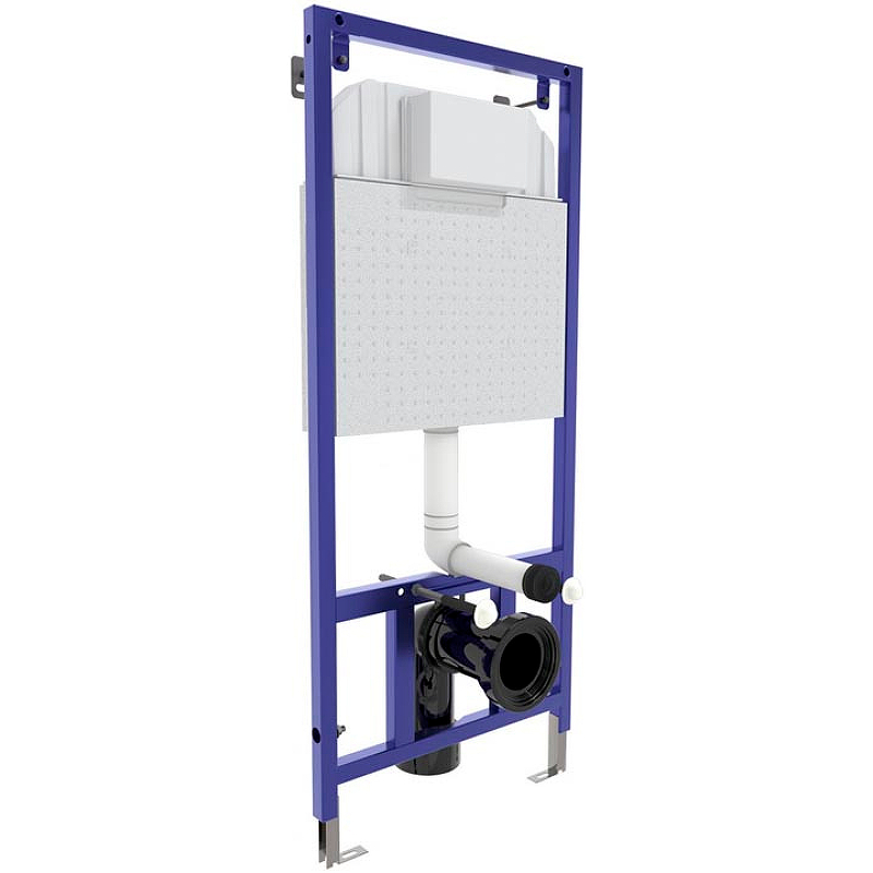 Металлический каркас, окрашенный антикоррозийной эмалью. Расчетная нагрузка 400кг. Толщина бачка 80мм. Подходит для установки в малогабаритных помещениях. Объём резервуара воды 10 л с тепло- и шумоизоляцией. При давлении 3-5 бар уровень шума от 13 до 18 дБ. Подвод воды сверху (G1/2 наружная). Объем смыва 3/6 литра с возможностью регулировки. Управление механическое, две кнопки. Межосевое расстояние под шпильки для подвеса унитаза 18 и 23 см. Ножки регулировки высоты из оцинкованной стали. Полный комплект для быстрой установки.