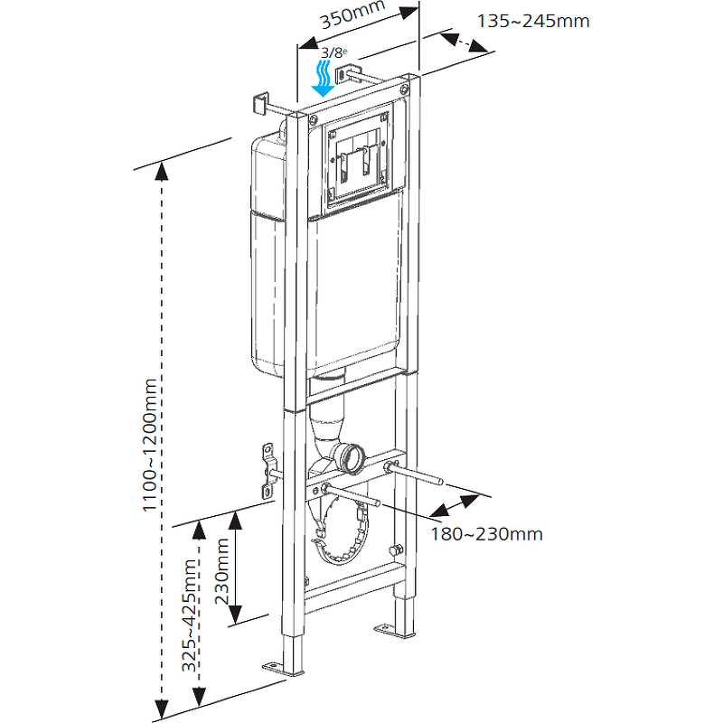 Рама, смывной бачок, монтажный комплект, клавиша. Максимально допустимая нагрузка 400 кг. Тихий смывной клапан. Все необходимые крепления в комплекте.