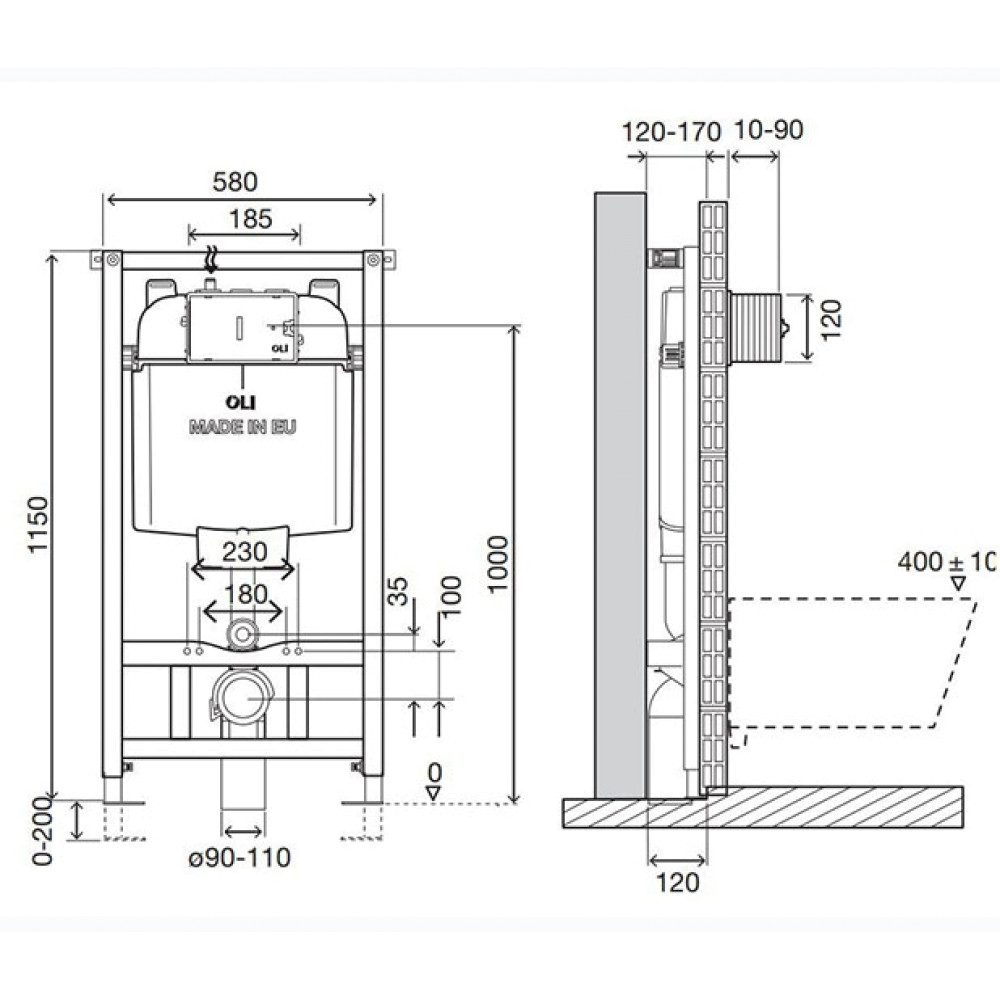 Система инсталляции для унитаза OLI74 Plus OliPure, с металлическими креплениями, пневматический привод управления смывом.