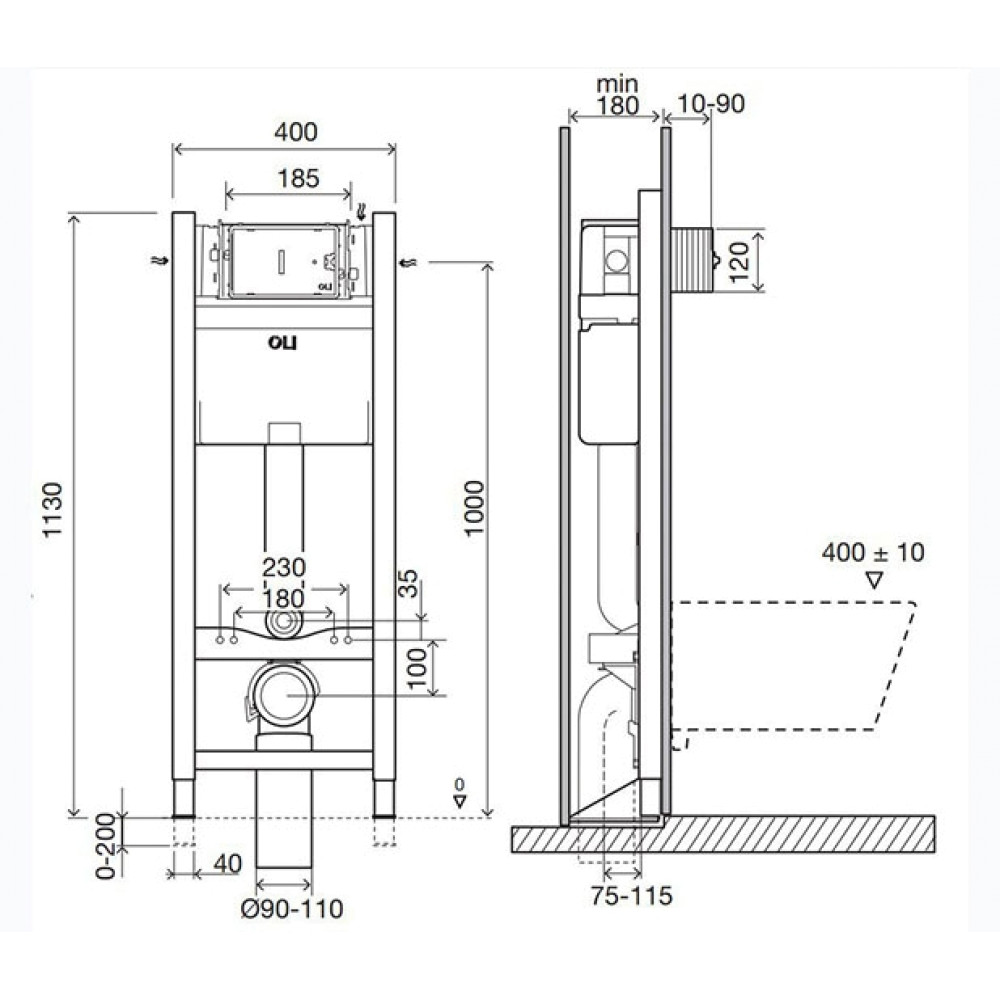 Инсталляция OLI Expert Plus Sanitarblock отдельностоящая, для фронтальной или верхней установки смывной клавиши