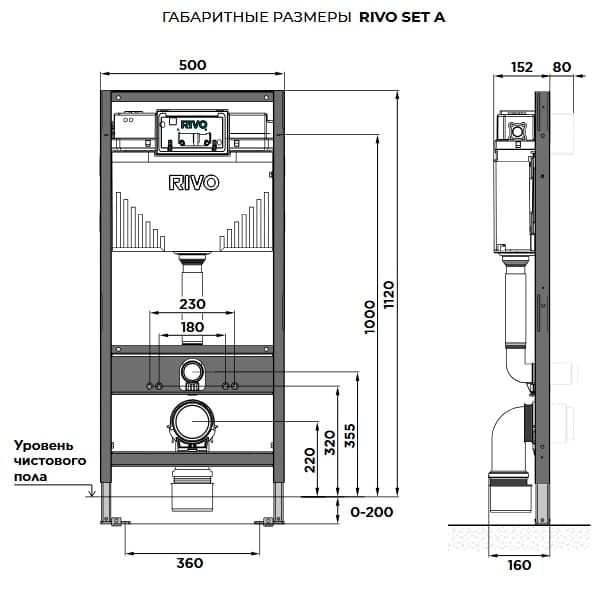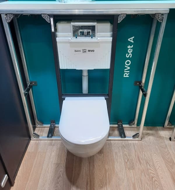 RIVO Set A арт.200001 - инсталляция для подвесного унитаза в комплекте со сливным бачком предназначена для монтажа в каркасных стенах из дерева или из металлического профиля любых систем, в том числе для крепления на алюминиевом профиле RIVO Fix. Может быть установлена в углу, перед стеной или в виде консольного блока. Модуль инсталляции соответствует стандартам шумоизоляции и совместим со всем модельным рядом панелей смыва RIVO Touch.