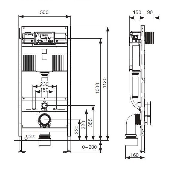 Инсталляция, TECE, TECEprofil, для унитазов-биде с приводом спереди, ширина, мм-500, глубина, мм-150, высота, мм-1120, тип установки-к стене, со смывным бачком Uni , объем смыва, л-10, материал-сталь с порошковым покрытием, клавиша смыва-необходимо заказать, крепёж-необходимо заказать