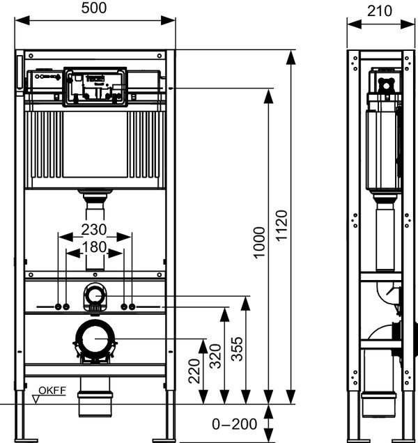 Инсталляция, TECE, TeceSpring, для унитаза, ширина, мм-506, глубина, мм-210, высота, мм-1144, застенный модуль с двойной рамой, присоединение к канализации DN90, материал-сталь, тип установки-отдельностоящий (к полу), клавиша смыва-необходимо заказать