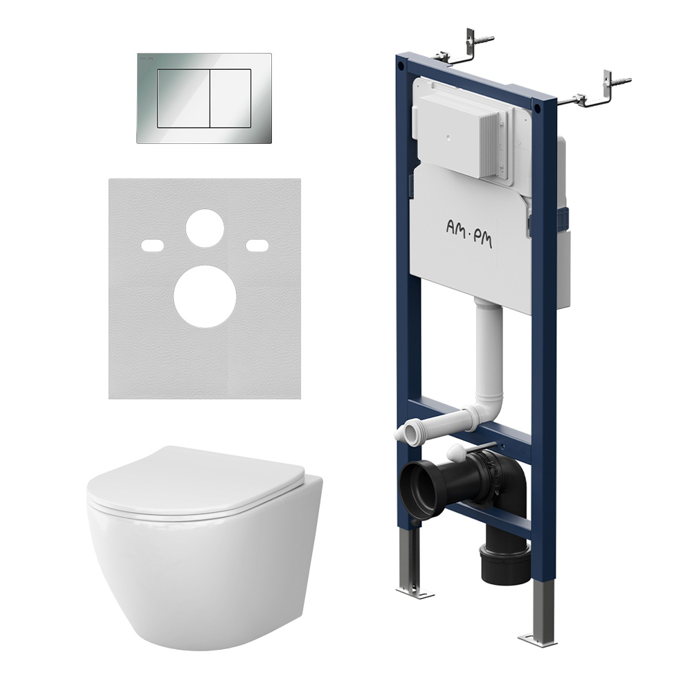 Комплект нсталляция c унитазом AM.PM Like Aquaspin с клавишей PrimeFit S, хром глянц, с сиденьем микролифт (IS90251.801900)