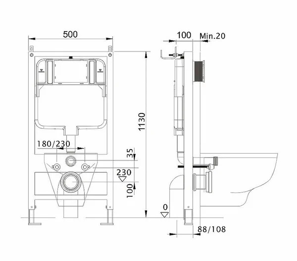 Инсталляция с унитазом Aquatek Бетта рама Standard INS-0000012(без клавиши и крепежа)+унитаз Бетта AQ1253W-00 с тонким сиденьем soft-close (