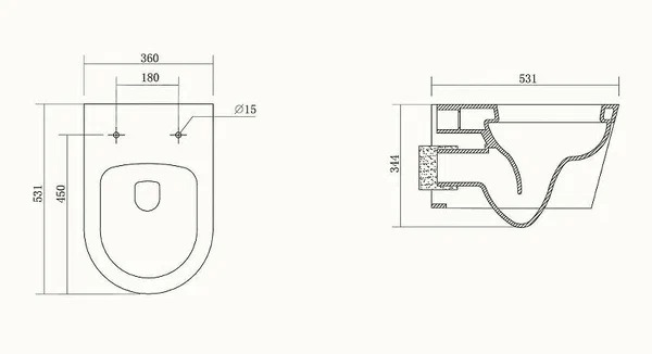 • Объем смывного бачка 6 л. Толщина бачка 10 см