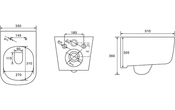 • Объем смывного бачка 6 л. Толщина бачка 10 см
