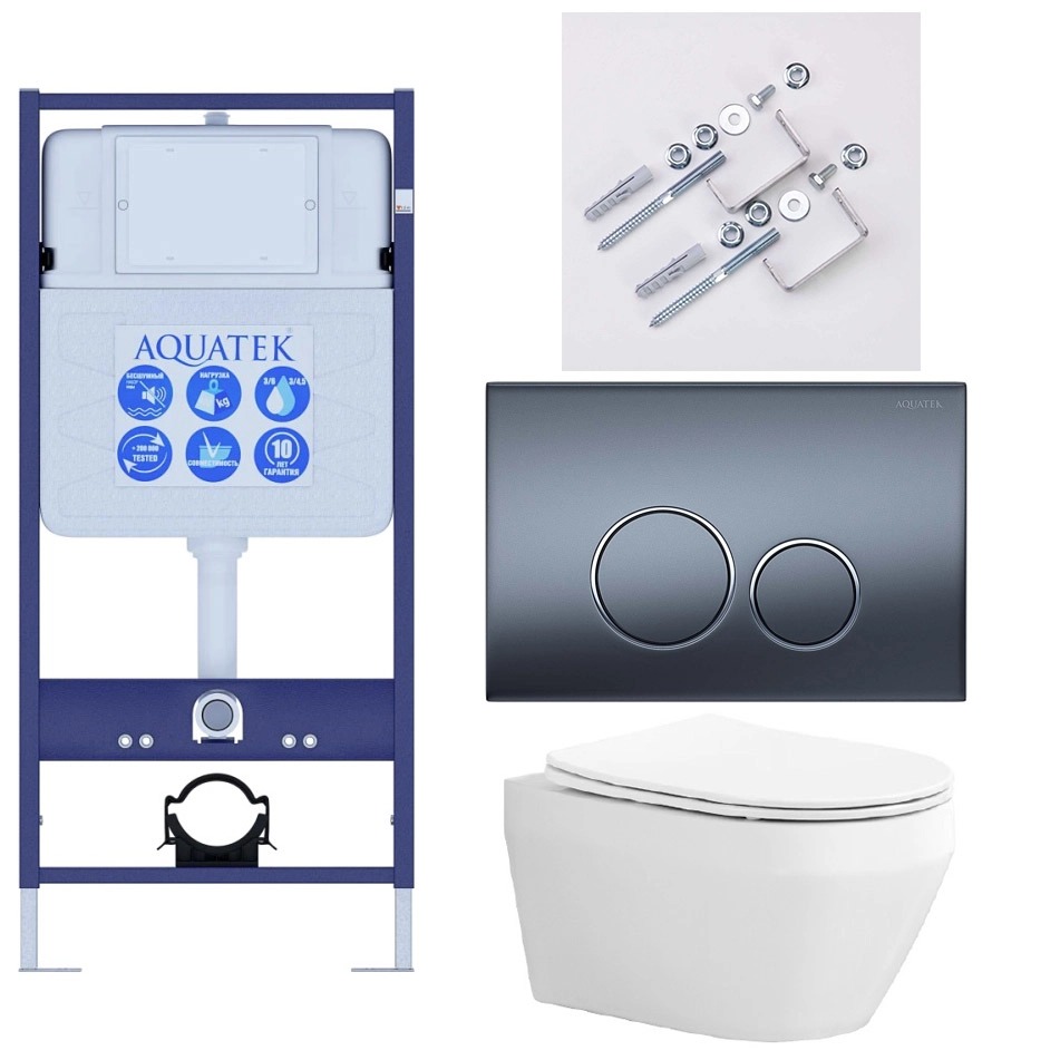 Комплект нсталляция c унитазом Aquatek Лея Т рама Standard INS-0000012, клавиша KDI-0000035 ,KKI-0000002 крепёж+унитаз Лея AQ1199T-00 с тонким сиден