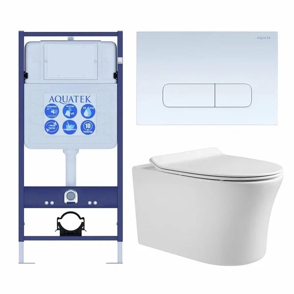Комплект нсталляция c унитазом Aquatek Ника-013 4в1 рама Standard INS-0000012+крепеж KKI-0000002+клавиша KDI-0000013+унитаз Ника AQ2009-00 с тонким