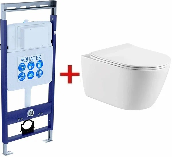 Инсталляция с унитазом Aquatek Оберон рама Standard INS-0000012(без клавиши и крепежа)+унитаз Оберон AQ1363W-00 с тонким сиденьем soft-close